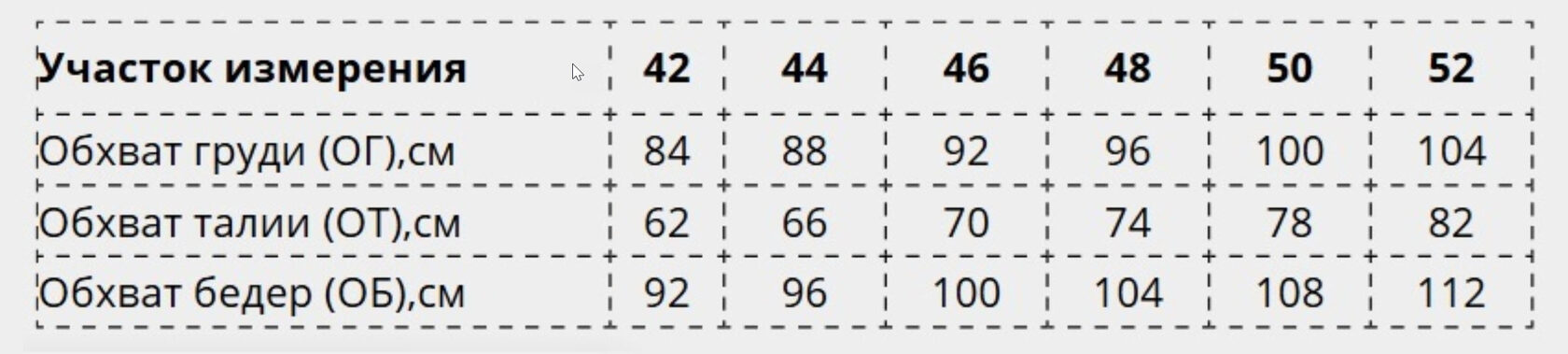 Для плечевых изделий (платья, блузки, жакеты, пальто и т.д.) ориентируйтесь на обхват груди. Для поясных изделий (брюки, юбки, шорты и т.д.) основная мерка — обхват бедер. Интервал между размерами составляет 4 см.